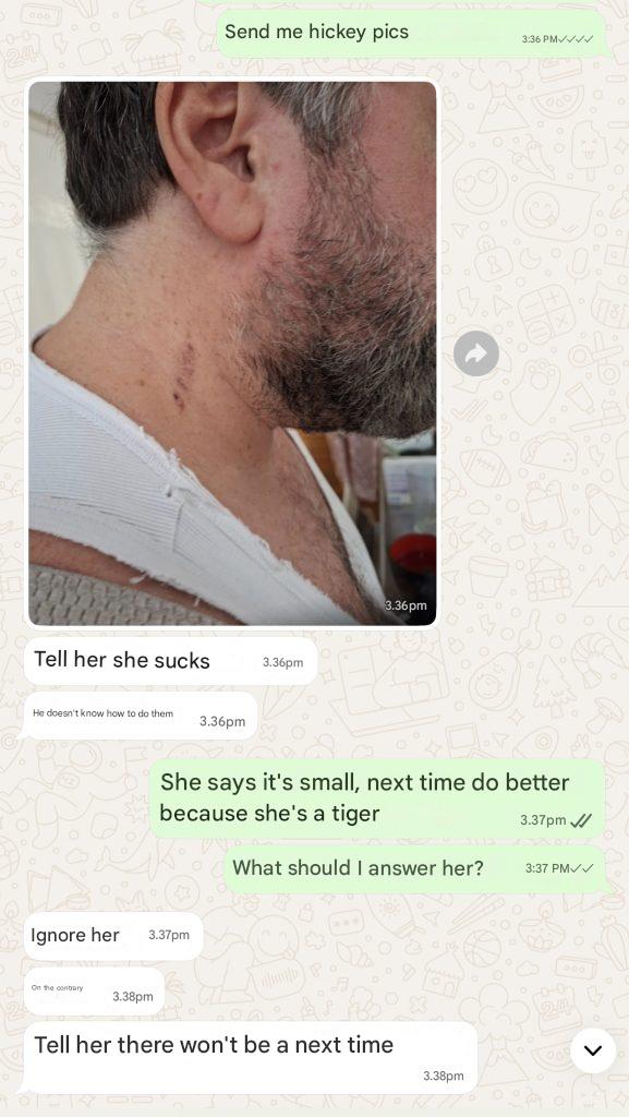 So that’s what that neck pain was with Ninfetta. The bitch wanted to mark her territory. That hadn’t happened to me even when I was 15.