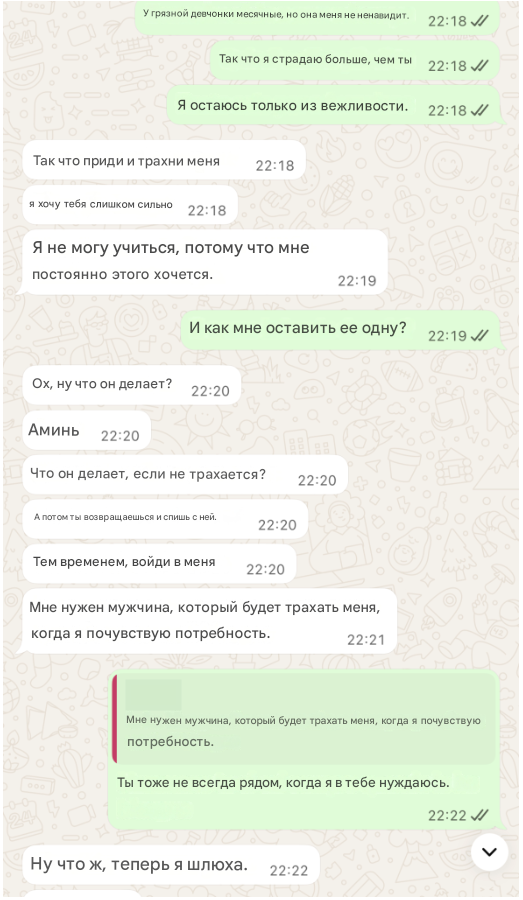 A warrior like me isn’t scared by a little blood on his sword. But she doesn’t want to hear about it, she says to wait a few days for it to end before having sex… And she’s always fiddling with that phone, a bit less present than usual. I’m quite annoyed by this; something doesn’t add up. And this feeling will make possible what I’m about to tell.